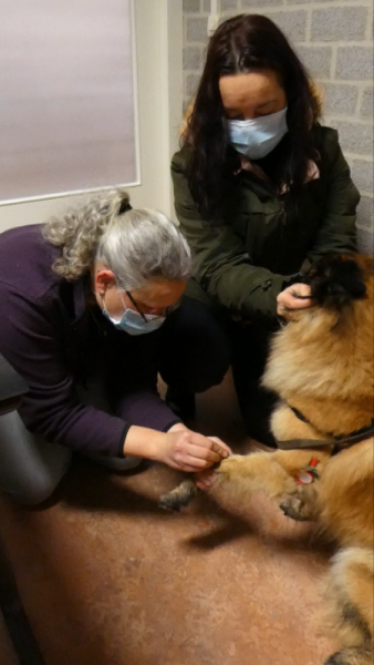 We hebben enkele extra regels ingepland: We werken enkel op afspraak, met maximaal 1 begeleider per hond of kat en het dragen van een mondkapje is verplicht. Daarnaast kan de eigenaar buiten wachten op de uitslag en wordt iedereen verzocht om niet in groepjes te wachten. Dat maakt het iets ongezelliger, maar het is nu niet anders. De meeste klanten gaan een rondje wandelen met de hond of ze gaan even naar huis als ze in de buurt wonen.